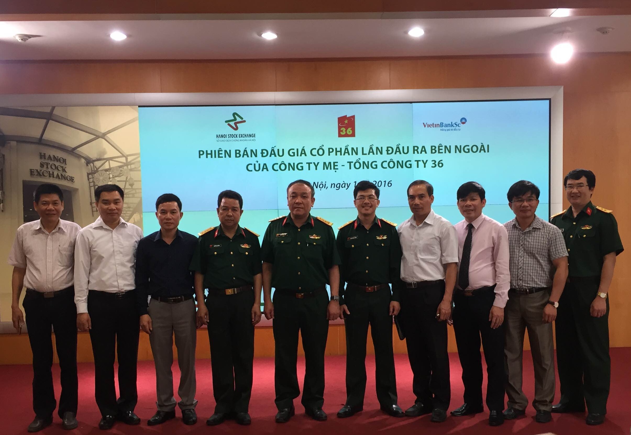 Sáng 14/4/2016, tại Sở giao dịch chứng khoán Hà Nội HNX, Tổng công ty 36 đã có phiên đấu giá thành công. Kết quả Tổng Công ty Cổ phần Bảo hiểm Bưu điện đã mua trọn 4,3 triệu cổ phiếu với giá 15.102 đồng. Hiện nay cổ phiếu của Tổng công ty 36 đang được đăng ký giao dịch trên sàn chứng khoán UpCom với mã cổ phiếu là G36. Để đáp ứng nhu cầu về vốn và mở rộng quy mô sản xuất kinh doanh,sau khi hoàn thành cổ phần hóa, tháng 8/2017 Tổng công ty 36 đã quyết định tăng vốn điều lệ lên 936 tỷ đồng.